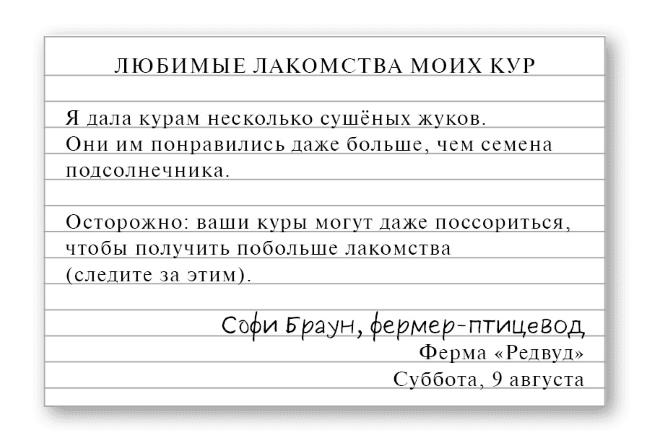У папы и Вайолет ещё оставались дела на винограднике, Лупе надо было разобраться, как зарегистрироваться на свои занятия, а мне – проверить яйца и кур, записать наблюдения и написать тебе письмо.