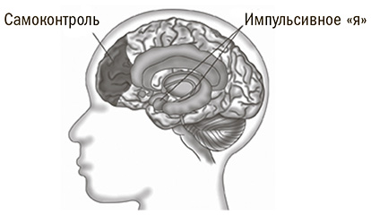 Проблема двух рассудковКогда сила воли нас подводит: мы слишком много тратим, слишком много едим, канителимся, выходим из себя – мы можем усомниться, есть ли у нас вообще префронтальная кора. Конечно, возможно устоять перед искушением, но это не значит, что мы так и поступим. Вполне допустимо, что мы способны сделать сегодня то, что можно отложить на завтра, но чаще побеждает завтра. За эту печальную правду жизни вы тоже можете поблагодарить эволюцию. Люди развивались, но их мозг почти не менялся. Природа предпочитает достраивать уже созданное, а не начинать с нуля. Людям требовались новые навыки, однако наш примитивный мозг не был заменен совершенно новым образцом – система самоконтроля нахлобучена на старую систему желаний и инстинктов.