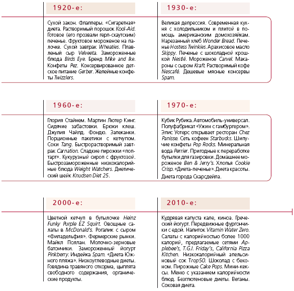 И всего каких-то сто лет назад технологии позволили начать массовое производство продуктов питания. В 1 910 году рекламодатели стали призывать домохозяек отказаться от выпечки хлеба и экономить время, покупая в магазинах готовые батоны. В 1 930-е более совершенное кухонное оборудование, позволявшее хранить продукты дольше и готовить еду без особых хлопот, сделало идею удобства еще привлекательнее. Компания Kraft представила готовый продукт мак-н-чиз (макароны с сыром), а Nescafe вышла на рынок с растворимым кофе. В 1950-е «телеужины» пришли на смену семейным обедам за большим столом, а 1 960-е – десятилетие, отмеченное рождением фондю, – принесли американцам полуфабрикаты в виде сладких пирожков «поп-тарт», низкокалорийных блюд Weight Watchers и диетических коктейлей. Видите, как это работает? Больше готовых продуктов, меньше натуральной пищи, а потом всем приходится садиться на диету.