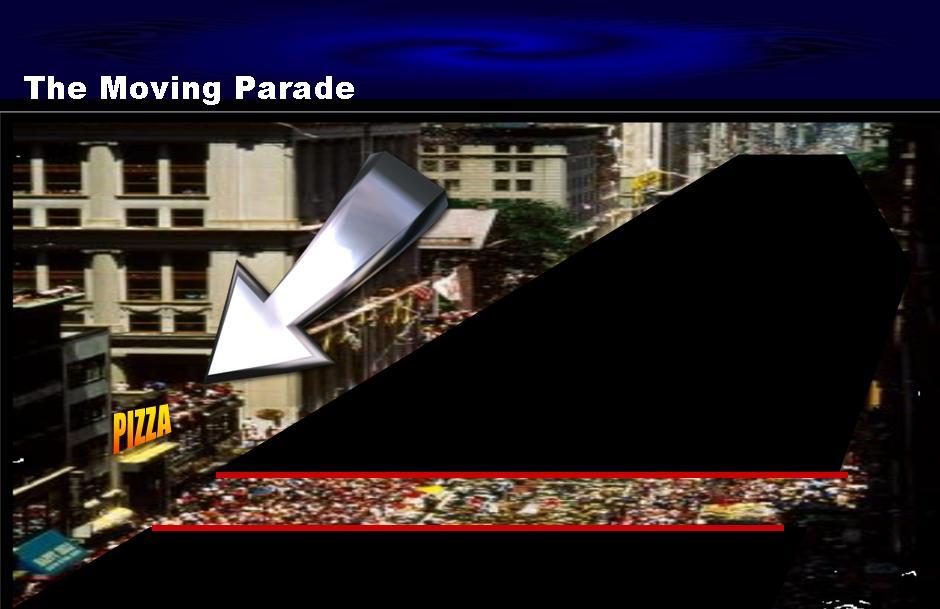 Представьте себе нескончаемый парад людей, идущих мимо вашего ресторана. Некоторые из них хотят, чтобы вы предложили им что-то – прямо сейчас, некоторые – в ближайшую пятницу, другие – в следующем месяце. А некоторые подождут до следующей среды. Или до зарплаты. Или, когда их компания придет в этот город. Или на день рождения. Или на какие-то особые случаи. Вы должны получить место рядом с этим бесконечным парадом. Вы должны постоянно держать свою рекламу перед ними. Вы уверены, что заарканили уже всех? А как насчет всех новых людей, проходящих мимо? Вот рисунок для подтверждения моей точки зрения.