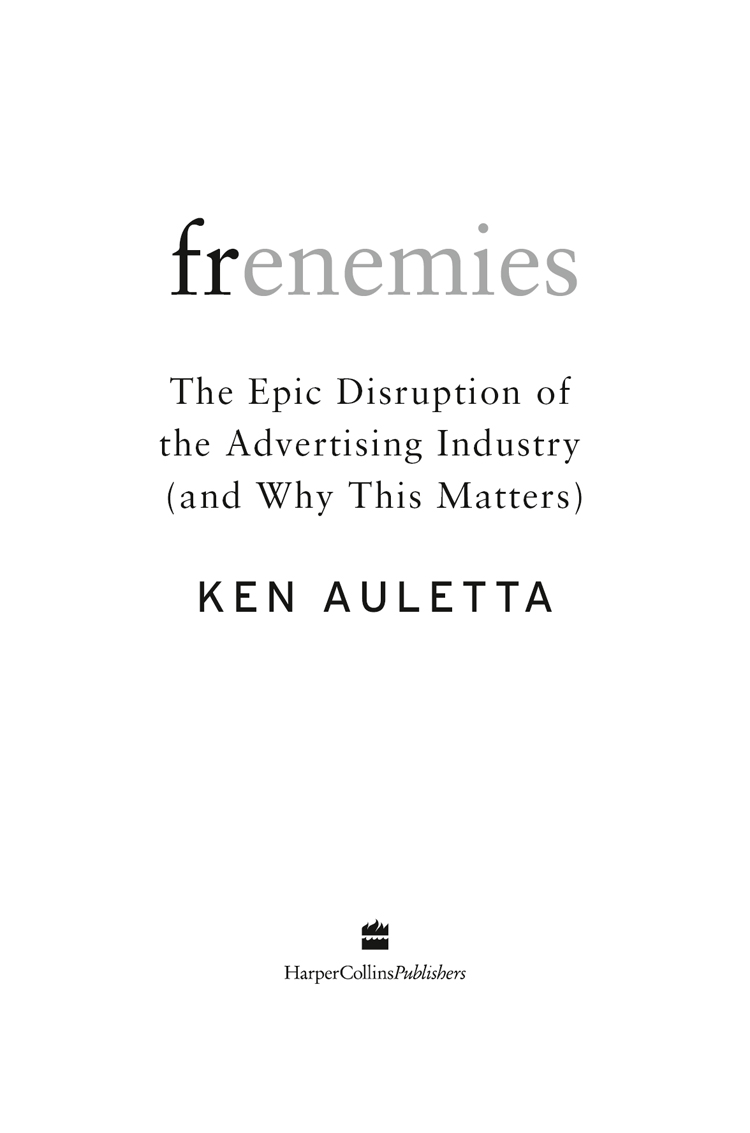 This book attempts to peer deeply into this world. I sought to step into the shoes of many important actors and frenemies in the marketing world, old and new, disrupters and disrupted alike. It is a world stocked with passionate and creative people, but it is also a world roiled by anxiety. Ultimately, this is a story of a world whose fate is imperiled, and why that fate matters to us all.