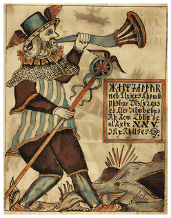 Изображение скандинавского бога Хеймдалля с Гьяллархорном из исландской рукописи XVIII века