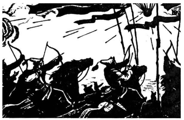 “Kırgızlar; bizim aradığımız sizsiniz!” Kımkar adlı pehlivan kılıcını çıkarıp bağırarak geldi.