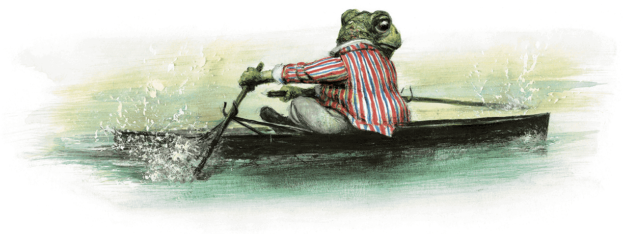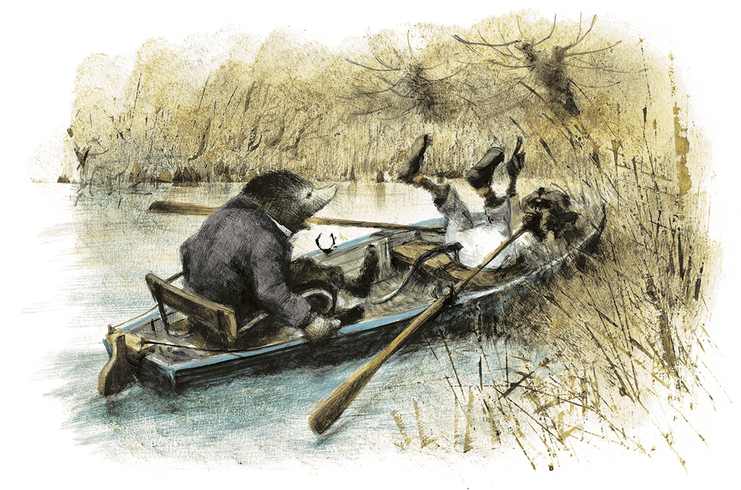 – Сядь на место, дурень! – завопил Крыс, лёжа на дне лодки. – Ты же не умеешь! Мы же перевернёмся!