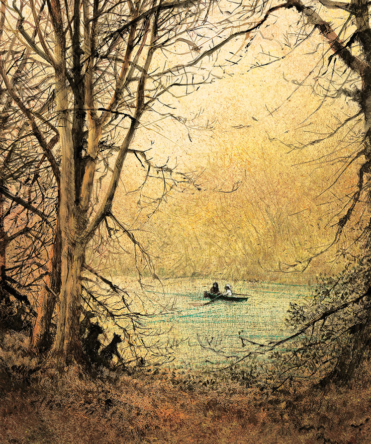 Вечерело. Солнце клонилось к западу. Крыс задумчиво грёб, бормоча обрывки стихов и не обращая на Крота внимания. Но Крот, гордый собой и переполненный впечатлениями, твёрдо решил вернуться домой на лодке самостоятельно. Ему не сиделось. Наконец он сказал: