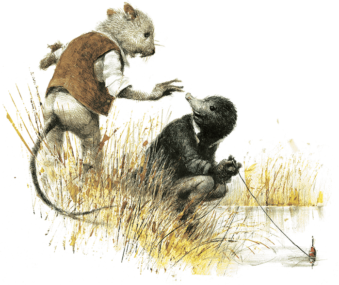 Назавтра Крот, вставший поздно и не склонный серьёзно раздумывать о чём бы то ни было, удил на берегу рыбу, когда после нескольких визитов к друзьям и обмена новостями его нашёл Крыс.