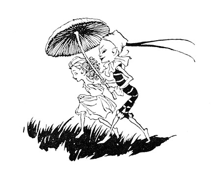 Если бы в этот вечер вы смогли остаться в саду, как сделала знаменитая Мейми Маннеринг, вы бы увидели восхитительное зрелище: сотни очаровательных дам, спешащих на бал, супружеские пары с обручальными кольцами на талиях, одинаково одетые эльфы, поддерживающие шлейфы своих дам, бегущие впереди факельщики, которые вместо обычных факелов освещают путь физалисами. Вы бы увидели гардеробы, куда феи сдают свою верхнюю одежду, получая взамен номерки, и где они надевают бальные серебряные туфли; цветы, ушедшие с Тропы Малышей, чтобы посмотреть на бал, – их охотно пускают, потому что в случае нужды у них всегда можно одолжить булавку. Наконец, во главе праздничного стола вы бы увидели Королеву Маб, а за её стулом Лорда-Гофмейстера, который держит в руках одуванчик и дует на него всякий раз, когда её величеству угодно узнать время.