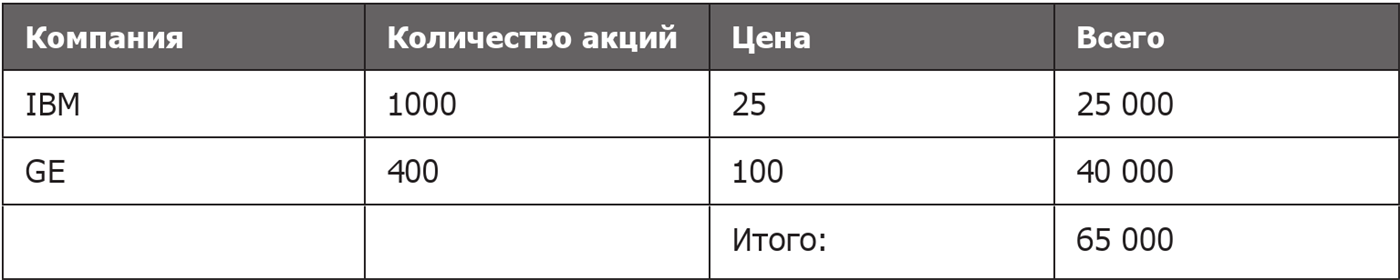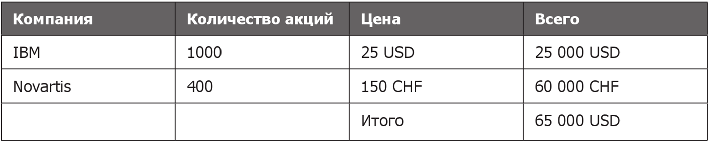 □ выполнять умножение величин в валюте (стоимость одной акции) на количество акций, результатом этой операции должна быть величина в валюте.
