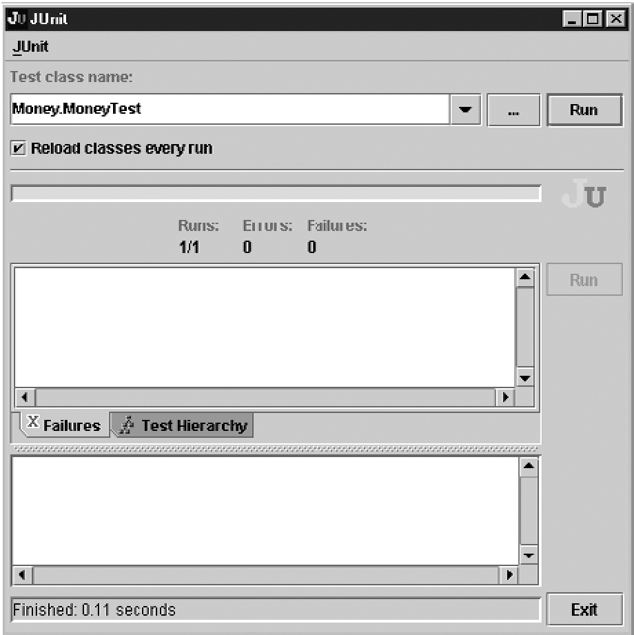 Рисунок 1.2 показывает результат повторного запуска теста. Теперь мы видим ту самую зеленую полоску, воспетую в поэмах и прославленную в веках.