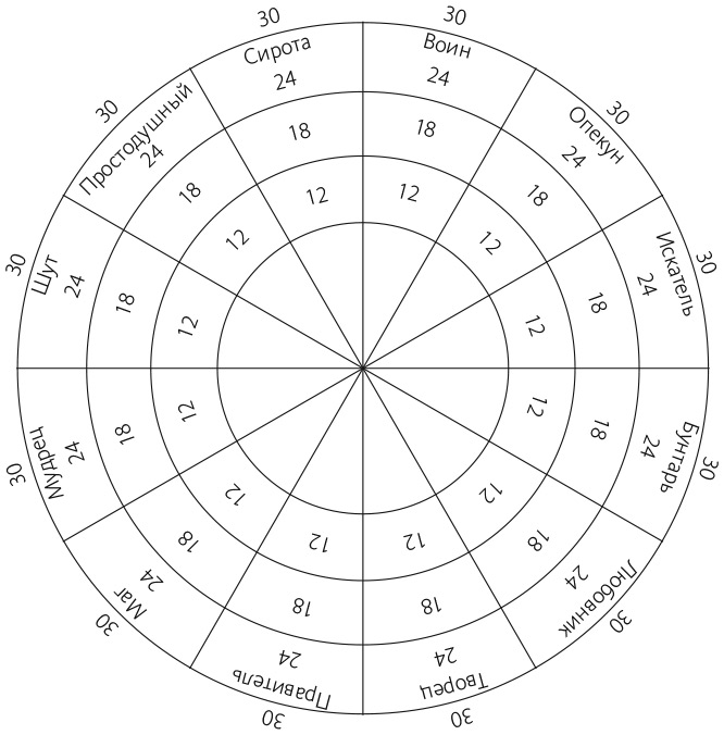 Индекс Мифа ГерояСоветую перед чтением определить свой Индекс Мифа Героя (ИМГ). Он позволяет оценить присутствие двенадцати архетипов в жизни. Заполните круговую диаграмму ИМГ. По мере чтения вы сможете опираться и на результаты теста, и на собственные представления об активности архетипов в вашей жизни. Возможно, вы захотите сосредоточиться на тех частях книги, которые наиболее актуальны для вас сейчас.