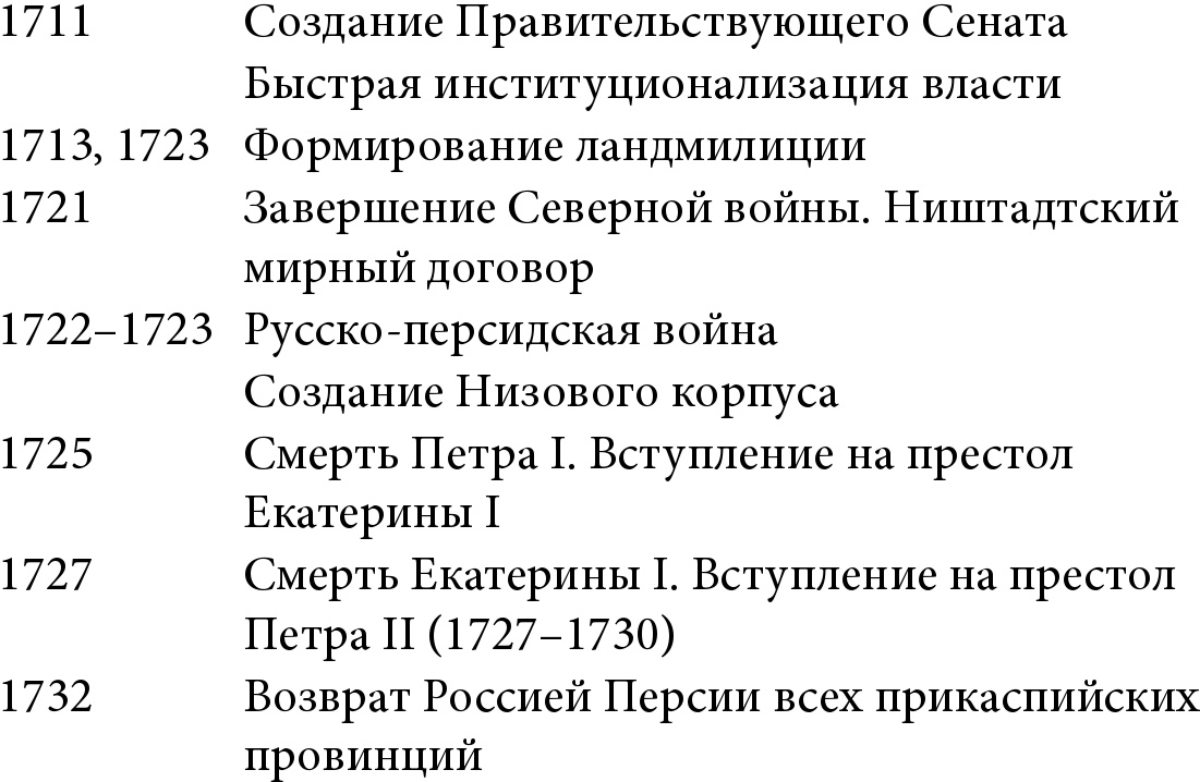 К 1730 году Россия во многом решила свои новые военные задачи. Она практически сравнялась с современными ей европейскими странами, не пожертвовав при этом обороной своих по-прежнему важных степных границ. Многочисленные реформы XVII века заложили фундамент для реорганизации русской армии, выполненной Петром I (и многих других его нововведений). Успешность этих перемен отчасти была подтверждена победой русской армии в длительной и изматывающей войне со Швецией, ведущей военной державой на Балтике. В территориальном плане итоги Северной войны (1700–1721) были не такими впечатляющими по сравнению с приобретениями, сделанными Русским государством в предшествующем столетии (Украина и Сибирь). Однако в символическом смысле полученный выход к Балтийскому морю означал отход России от статуса «степного государства» и включение ее в сообщество великих европейских держав (наряду с Османской империей). Армия и флот, благодаря которым Россия и добилась такого успеха, обладали теми же ключевыми характеристиками, что и вооруженные силы других ведущих стран: правительство само решало, сколько ему нужно людей и ресурсов для военных целей, и не только контролировало военные технологии и организацию, но и обладало достаточным общественным и политическим влиянием, чтобы содержать (в основном и за казенный счет) крупную, постоянную и обученную армию. Однако при этом русские вооруженные силы начала XVIII века имели некоторые отличия от европейских армий (и флотов) раннего Нового времени. Так, например, для защиты России от степных набегов все еще необходимо было содержать земское ополчение (ландмилицию). В русской армии в процентном соотношении значительно преобладала кавалерия, а флот в большей степени играл вспомогательную роль, нежели являлся самостоятельной военной силой. Тем не менее военные историки сходятся в том, что России удалось создать «современные» вооруженные силы, которые в наступившем столетии не уступали военной мощи других европейских держав. Правление жены и сына Петра I после его смерти продемонстрировало, что петровские реформы сформировали стандарт военного устройства России.
