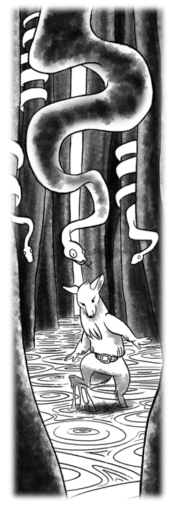 И тут змея молнией бросилась на меня. В её отвратительной пасти поместилась только моя макушка, а её зубы лишь слегка задели мои уши.