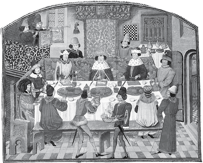 Королевская трапеза. Жан Фруассар. Хроники. Миниатюра XV в.