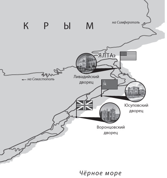 Хотя Ливадийский дворец служил императорской резиденцией, ему было далеко до 9300 м2 особняка в долине Гудзона, где выросла Кэти Гарриман. И спален для размещения всех трёх делегаций, численность которых день ото дня, похоже, росла по экспоненте, там было явно недостаточно. Сталин, как радушный хозяин, любезно предложил остановиться в Ливадии президенту Рузвельту. Поскольку парализованный Рузвельт был прикован к инвалидному креслу, Сталин решил избавить его от необходимости ежедневных поездок на заседания. Соответственно, Черчиллю и его свите был отведен Воронцовский дворец, в получасе езды от Ливадии. Для себя Сталин выбрал пристанище поскромнее, а именно превращенный в госдачу Юсуповский дворец в Кореизе, удобно расположенный на полпути между американской и британской резиденциями. Некогда владевший этим особняком князь Феликс Юсупов входил, по слухам, в число убийц Распутина, мистика или шарлатана (в зависимости от точки зрения) и ближайшего советника царицы Александры, сомнительное влияние которого на Романовых приблизило крах династии{3}. Намеревался ли непостижимый Сталин подать этим выбором некий сигнал – припугнуть своих визави или показать им, что ему не чужд чёрный юмор, – или просто исходил из удобства месторасположения, остаётся загадкой. Воронцовский дворец и дача в Кореизе были в куда лучшем состоянии, нежели дворец в Ливадии.