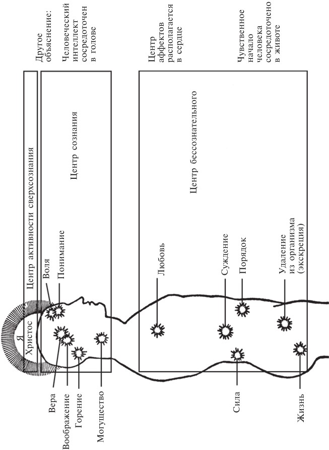 Примечание. Кроме 12 сил сознания есть еще Ум Христа, или Я есмь, он располагается в ганглиозном центре в верхней точке мозга, на темени. Когда этот центр сверхсознания пробужден, из него исходит сверхсознание во все 12 центров сил.