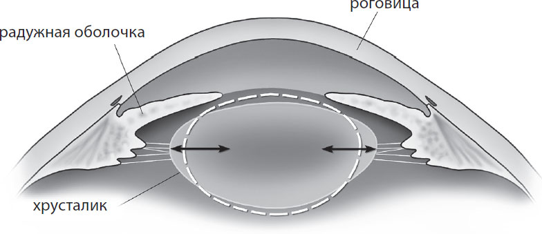 Рисунок 3.2. Аккомодация, или изменение формы хрусталика, помогает фокусировке глаза
