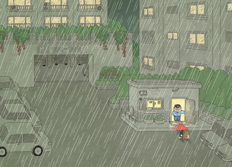 Охранник щёлкнул выключателем, и в жилом комплексе зажглись уличные фонари. Поужинав, старик посмотрел на спящего кота и подумал: «Это всего на одну ночь. Что уж поделать…»