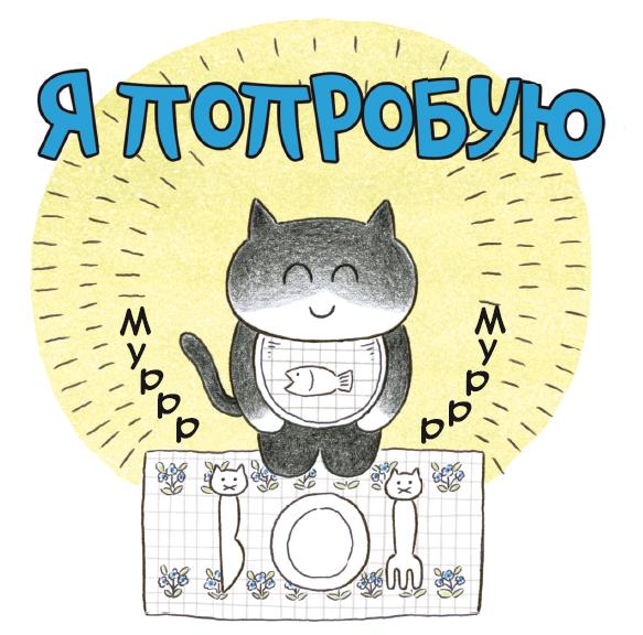 Дедушка отложил немного тунца на оставшуюся от салата пластиковую крышку, а Камням достал из чемодана вилку и нож. А ещё слюнявчик с нарисованными на нём рыбками!