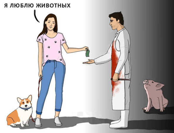 Многие из нас поддерживают такое положение вещей в своей повседневной жизни, несмотря на то, что большинство из нас, не смогли бы сами убить этих животных!