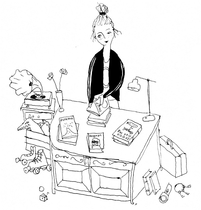 Конрад ожидал услышать звон колокольчика, как в других старых магазинах, но вместо этого раздалось коровье мычание. Звучало очень похоже, однако живой коровы в магазине не было. Во всяком случае, Конрад нигде её не увидел. Зато он заметил за прилавком девочку, точнее девушку: она сортировала книги. Девушка улыбнулась, и у Конрада прибавилось смелости.