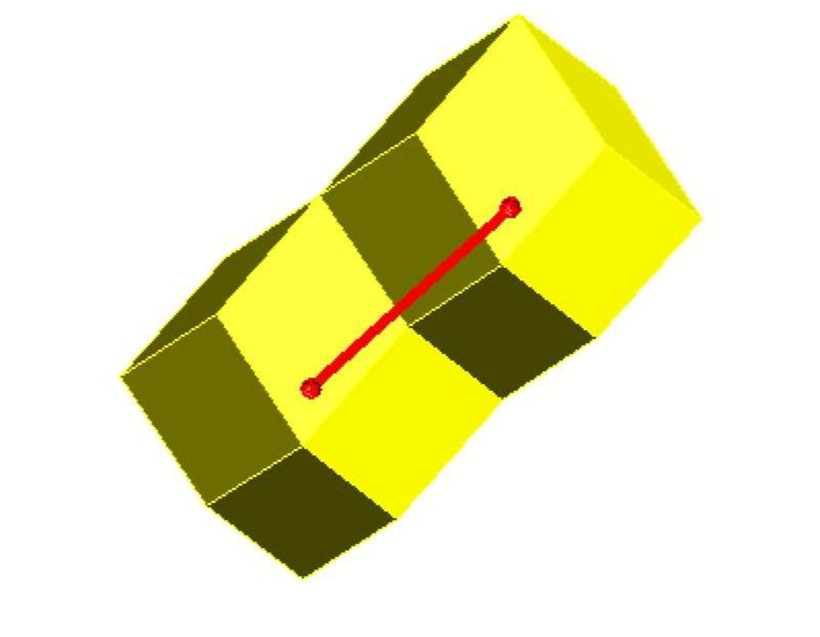 Расстояние между центрами двух соприкасающихся верхней и нижней зонами квантов пространства является минимально возможным расстоянием и называется квантом расстояния. На рисунке 5 квант расстояния показан прямой линией с шарами на её концах (на цветном рисунке эта линия красного цвета).