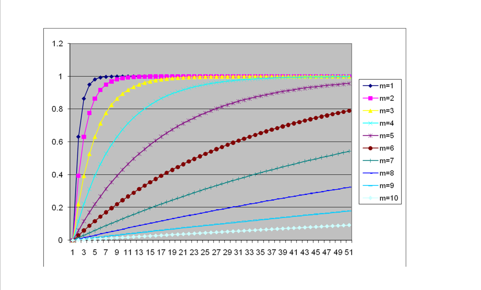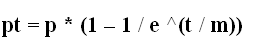 Рисунок 11. Зависимость плотности эфира – pt от расстояния до центра объекта – t для разных значений его массы – m