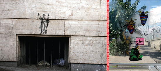 When it comes to Iran, there’s only one real street artist who is worth mentioning at the moment and that is Alone. He has been holding it down for many years on his own with no community support and is the most hardworking and dedicated street artist in Iran. In the west we know nothing about oppression and have been getting up (the process of putting up illegal art in the street) for as long as Alone has been living under an oppressive, watchful regime, something truly remarkable indeed. People disappear for much less and in 2007 Alone staged the first-ever stencil art exhibition in Tehran. Which says a lot about how he operates — the fact that he was the only person to stick his neck out and put on an exhibition dedicated to an outlawed art form. I have been friends with Alone for some years now and have seen him develop an original style: he started out just using stencils and now has allowed his work to be influenced by folk art and contemporary painting. I asked him who his influences are.