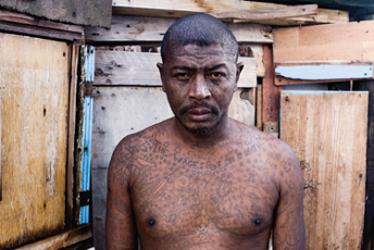 ‘It was because of the drug stuff that enabled me to meet the 28s and the 26s [prison gangs], really. When I came out here I had the most horrendous scars, almost disfiguring, on my face, but when I met the prison gangs, the first thing I thought was that the tattoos were such a rich art form in their own right, and I found it so fascinating, and also interesting because of my own scars. Which were nothing compared to the branding that the gangsters get from their face tattoos. It was very healing for me to see this. I had empathy for them as I had made my face peculiar as well. But I had the best year and a half with them because they are like the most amazing men and their stories are incredible. The tattoo is a kind of way for a human being to express themself when they have had everything else taken away.