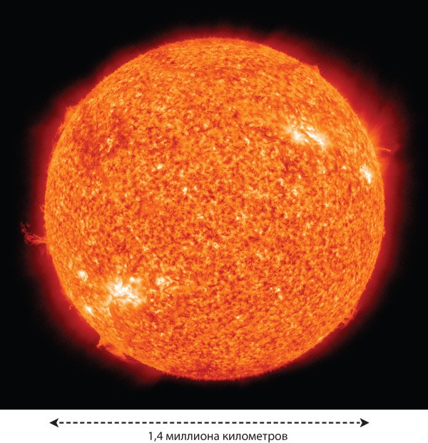 Солнечная системаЗвезды – это огромные раскаленные газовые шары, температура которых обычно поддерживается за счет ядерных реакций, протекающих в звездном ядре. Солнце – весьма типичная звезда. Его диаметр – 1,4 миллиона километров, что в сотню раз больше диаметра Земли. Поверхность Солнца покрыта различимыми на вид относительно горячими и относительно прохладными областями, а также кое-где встречаются вспышки (протуберанцы), и ее чрезвычайно интересно наблюдать в телескоп (рис. 2.3).