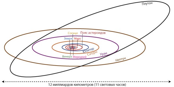 Солнечная система в тысячу раз больше, чем само Солнце; свету потребуется 11 часов, чтобы пройти от одного ее края до другого.