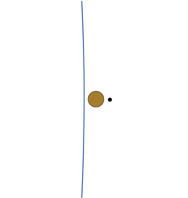 Черные дыры же (см. главу 5) целиком и полностью состоят из искривленного пространства и искривленного времени (в главе 4 я поясню это странное утверждение). Таким образом, черная дыра не содержит материи. Однако она имеет поверхность – ее называют «горизонтом событий» или просто «горизонтом», – через которую ничто не способно выйти наружу, даже свет; отсюда и слово «черная» в названии. Диаметр черной дыры пропорционален ее весу[13]: чем она тяжелее, тем больше.
