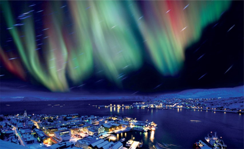 Рис. 2.9. Полярное сияние над Хаммерфестом, Норвегия