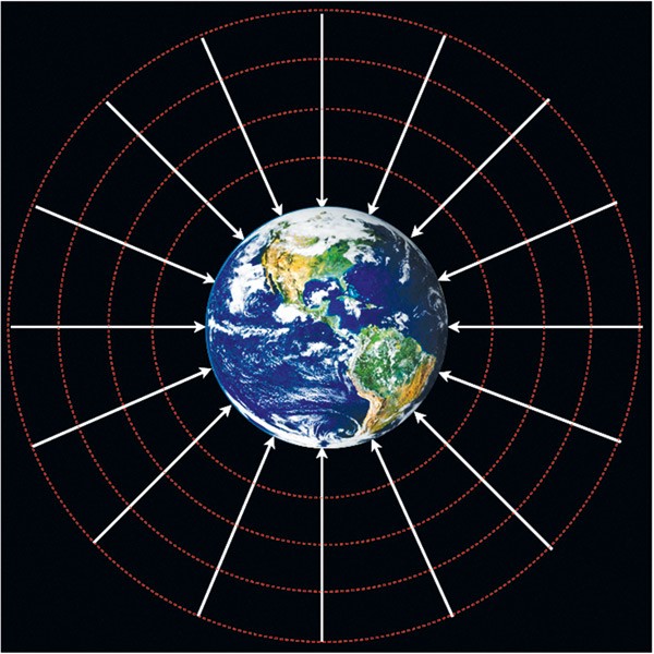 Рис. 2.11. Силовые линии гравитационного поля Земли