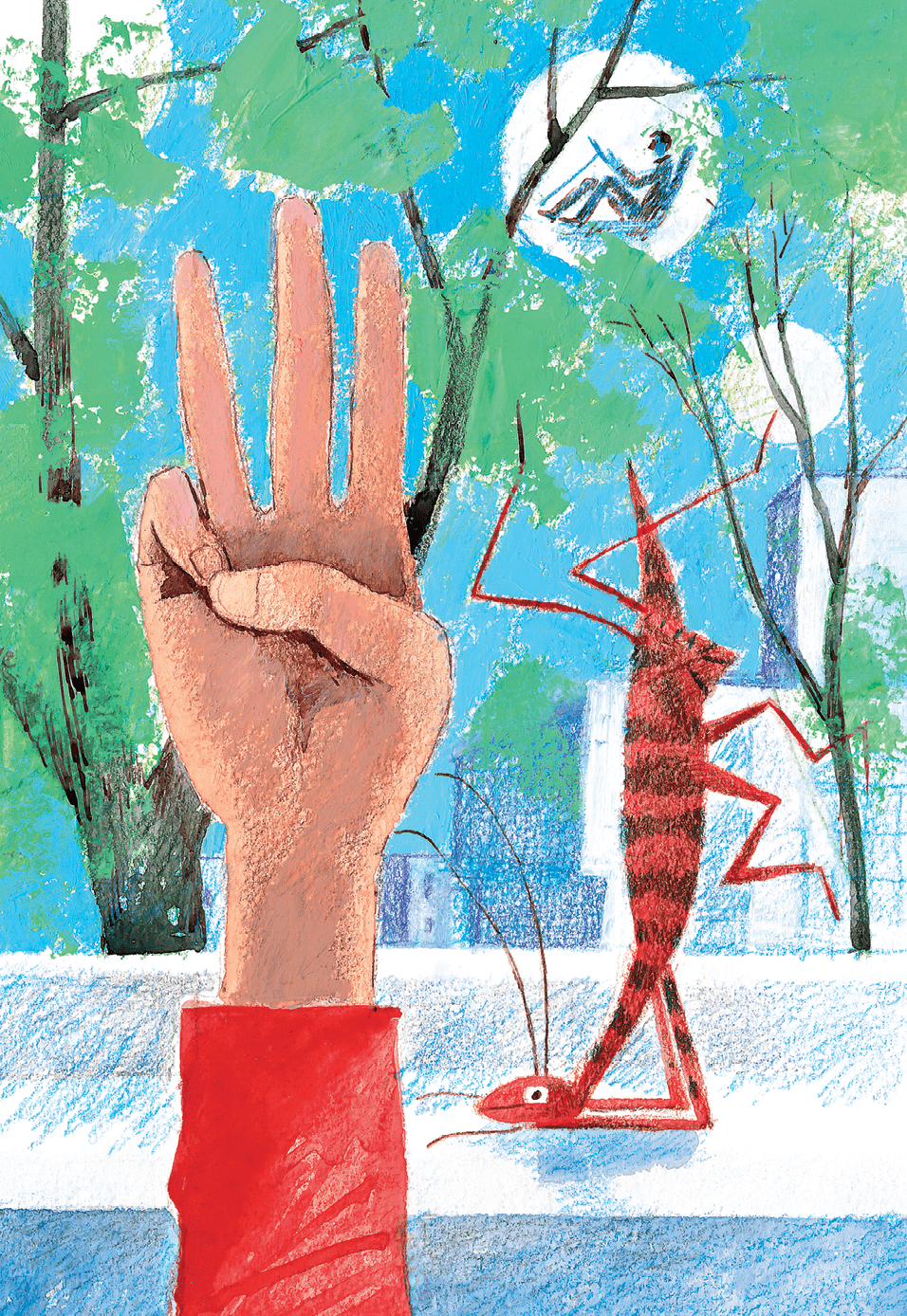 – А теперь поднимите правую руку и загните до половины мизинец. Это и есть марсианская буква «хфы». Запомнили?