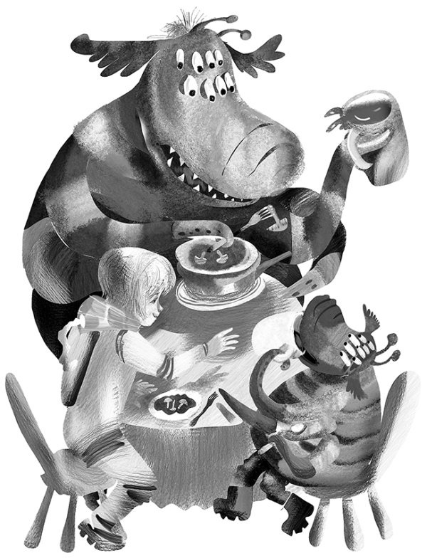 Вот такое чудовище набросилось на профессора, и многие в кафе зажмурились от страха – что сейчас оно сделает с маленьким человечком!