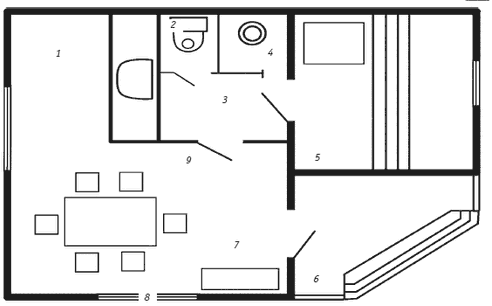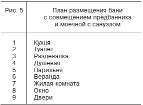 Вариант бани, приведенный на рисунке 5, представляет собой продолжение санузла дома.