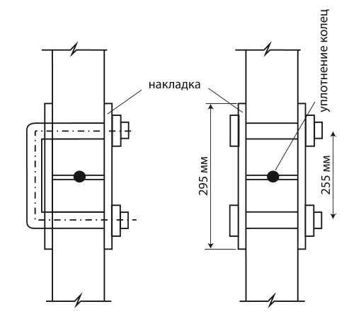 При использовании опускной технологии верхнюю часть ствола колодца может зажать обвалившийся грунт, в то время как нижняя часть конструкции будет свободно опускаться. Из-за этого может произойти разрыв стыков между бетонными кольцами. Чтобы такого не случилось, кольца соединяют друг с другом по высоте, что не допустит сдвига колец по горизонтальной плоскости. Для этого используют специальные накладки из полосовой стали толщиной 10 мм и шириной до 60 мм. Между собой их соединяют скобами или болтами (рис. 7).