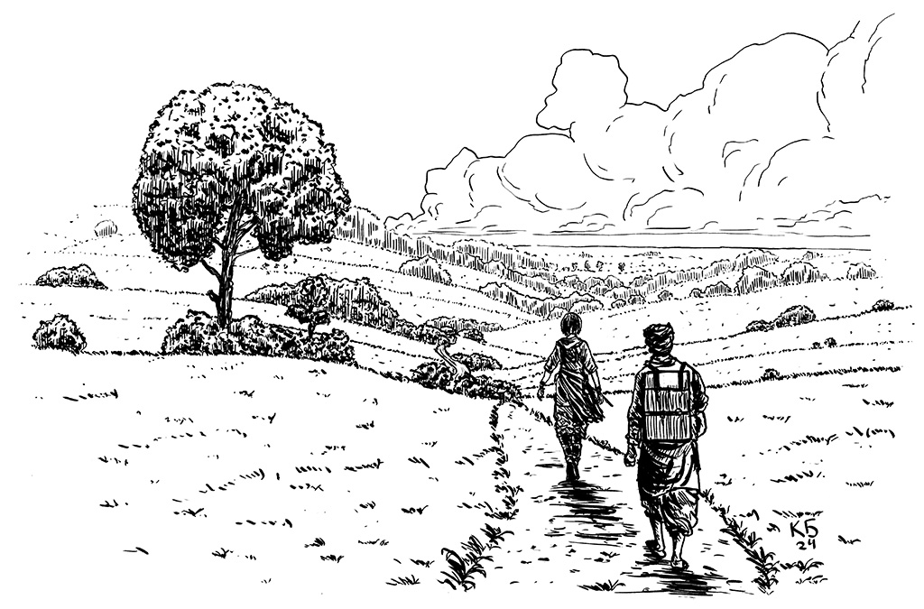 Дорога все еще грязна была от прошедшего вчера ливня, поэтому идти приходилось по траве, под деревьями, порой углубляясь в чащу.