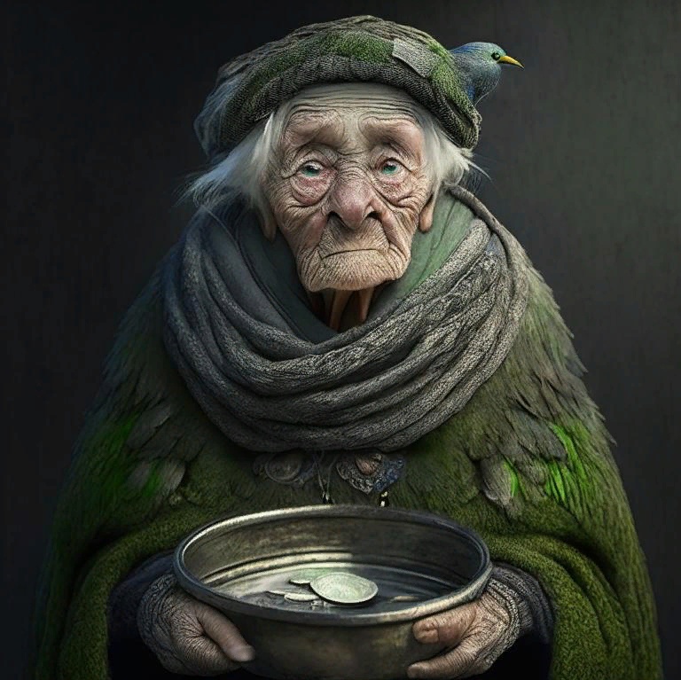 Спина и хвост у этой птицы были светло серыми, что делало ее незаметной на фоне грязного снега и затянутого тучами неба, и только грудка расчерченная полосками коричневого тона придавала ей некую яркость, мальчику стало ясно, что она – одиночка по своей сути, и с другими общается только по необходимости. Она никогда не хотела построить свое гнездо и любила свое одиночество, можно было взглянуть еще глубже, но он не стал этого делать и снял несуществующую корону. Только тогда ему стало ее жаль. Он подошел к Кукушке и бросил в ее чашку десятирублевую монету. Кукушка, похожая на старушку расплакалась и прикрыла свои глаза правой ладонью.