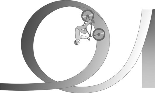 Но почему же тогда Луна не падает на Землю, как падает камень? Как Луне удается преодолевать гравитацию? А дело тут в центростремительном ускорении. Давайте разберемся, что это такое, на совершенно другом примере, а также выясним, как можно преодолеть гравитацию. Возможно, вы когда-нибудь видели, как велосипедисты или мотоциклисты едут по потолку, т. е. делают мертвую петлю.