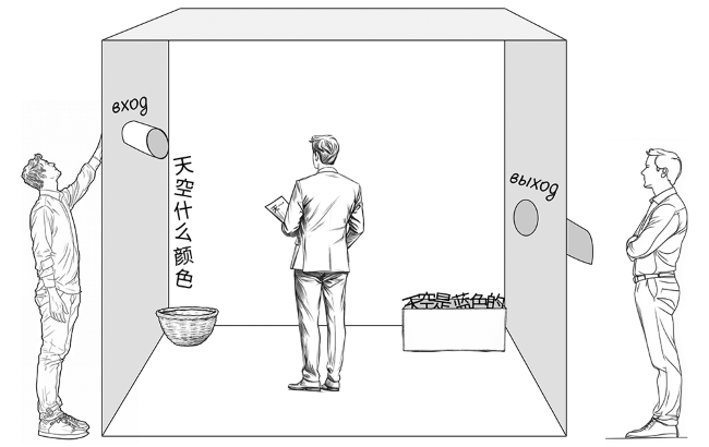 Рисунок, изображающий принципы эксперимента «Китайская комната»