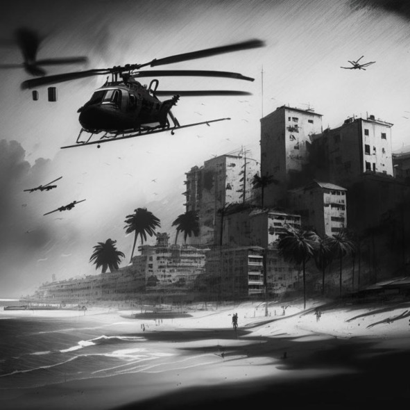 Когда все оказались в вертолете, Зубодеров с шумом закрыл дверь. Вертолет взмыл над курортным городом.
