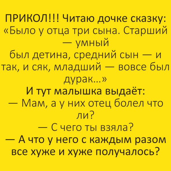 Мама, укладывая детей спать, так рявкнула, что соседи тоже расстелили постель и легли спать.