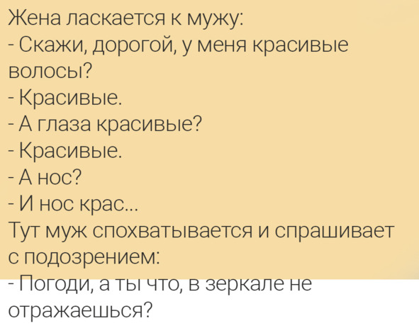– Милая, а кто у тебя был до меня? – Ты у меня, как Юрий Гагарин. – В смысле, первый? – Да, если не считать нескольких собак.
