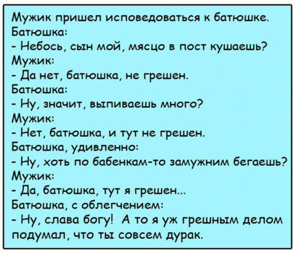 – Чем отличается милиция от полиции? – Понимаешь, милиция – это менты, а полиция – это понты… Такими темпами, скоро в каждом сквере будет храм, в каждом парке – собор, в каждом лесу – монастырь.