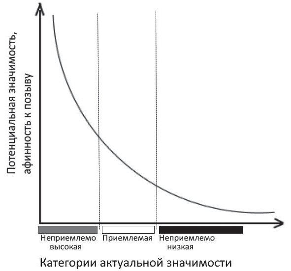 При понижении силы интенциирующего позыва значимости начинают понижаться, а диапазон приемлемого сужаться, благодаря чему усиливается избирательность в приемлемом.