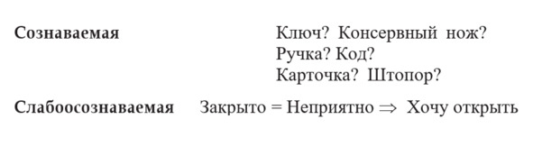 Но компонента рациональная, то есть результат понимания, имеющая отношение к той же потребности, все время и очень легко меняется, хотя практически не способна ничего изменить в слое компоненты слабоосознаваемой!