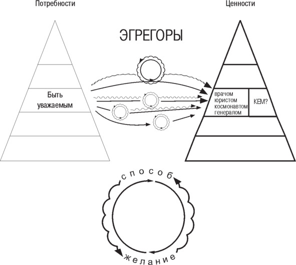 Для классификации эгрегоров, как устойчивых образований в коллективном бессознательном, оказывается неприменимым даже привычное нам деление потребностей и ценностей на высшие и низшие. Конечно, существуют пирамиды потребностей и пирамиды ценностей. И действительно внутри этих пирамид присутствует жесткая иерархия.