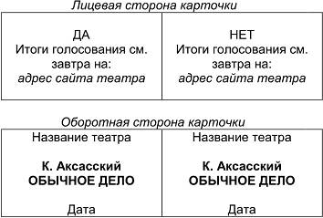 При проверке билетов на спектакль на входе в театр зрителям выдаётся бумажная карточка билетного размера следующего вида: