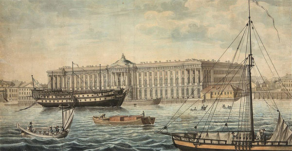 Вид с Невы на здание Академии художеств, гравюра К. Сабата